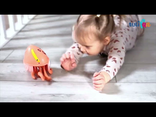 Rozbrykane macki i wesoła minka, to właśnie ona, Wędrująca Ośmiornica, która zachęca maluchy do ruchu! Zabawka wyposażona została w dwa tryby działania. Pierwszy pozwala zabawce przemieszczać się na boki przy realistycznym poruszaniu odnóżami. Drugi tryb uruchamia dodatkowo muzykę, przy których to dźwiękach ośmiornica porusza się w ten sam sposób, co w pierwszym trybie. Za uruchomienie wybranego trybu odpowiada przełącznik umieszczony na spodzie zabawki. Ośmiornica zasilana jest bateriami (niezawarte w zestawie).